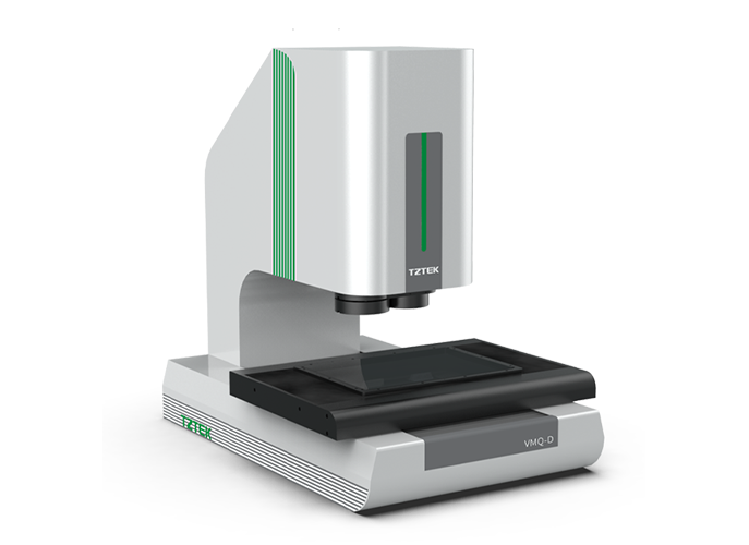 Video measuring machine equipped with an automatic zoom lens with the advantage of a large field of view at low magnification, automatically locates products and identifies serial numbers. With high magnification, the high resolution allows precise measurement of the placement accuracy of optoelectronic devices. Products in trays can be measured in batches, and measurement data is automatically uploaded to the MES system.